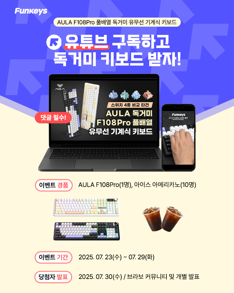 안녕하세요 브라보텍의 프리미엄 키보드/마우스 및 액세서리 브랜드 펀키스입니다. 2025년 7월 23일부터 7월 29일까지 진행했던 펀키스 유튜브 댓글 이벤트 당첨자를 발표합니다.