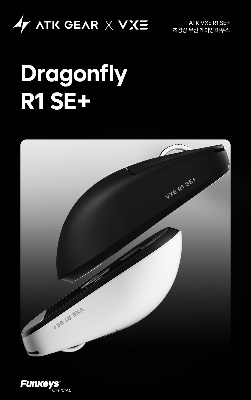 브라보텍의 프리미엄 키보드/마우스 및 액세서리 브랜드 펀키스에서 탁월한 가성비의 초경량 게이밍 마우스로 전 세계 게이머들의 주목을 받아온 ATK GEAR x VXE 브랜드의 게이밍 잠자리 마우스 R1 SE+ / R1 Pro Max 제품 재입고 소식을 안내드립니다.