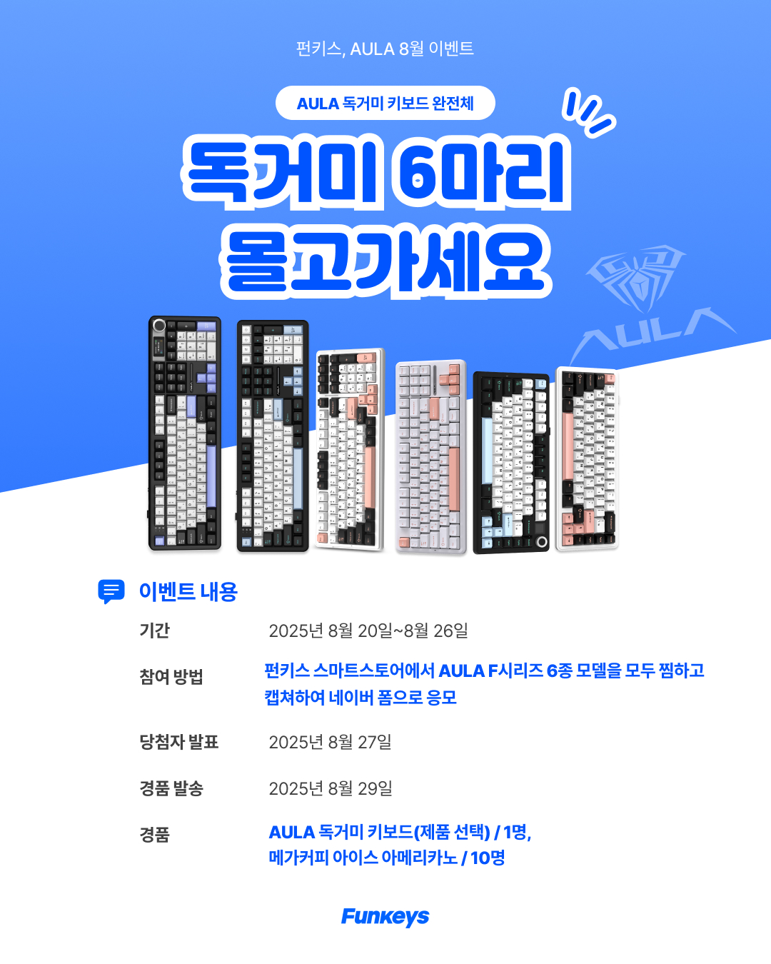 1280 [당첨자 발표] 펀키스, AULA 자석축 키보드 시리즈 9월 이벤트 ‘자석축 독거미는 못참지’ 펀키스 09.19 348 0