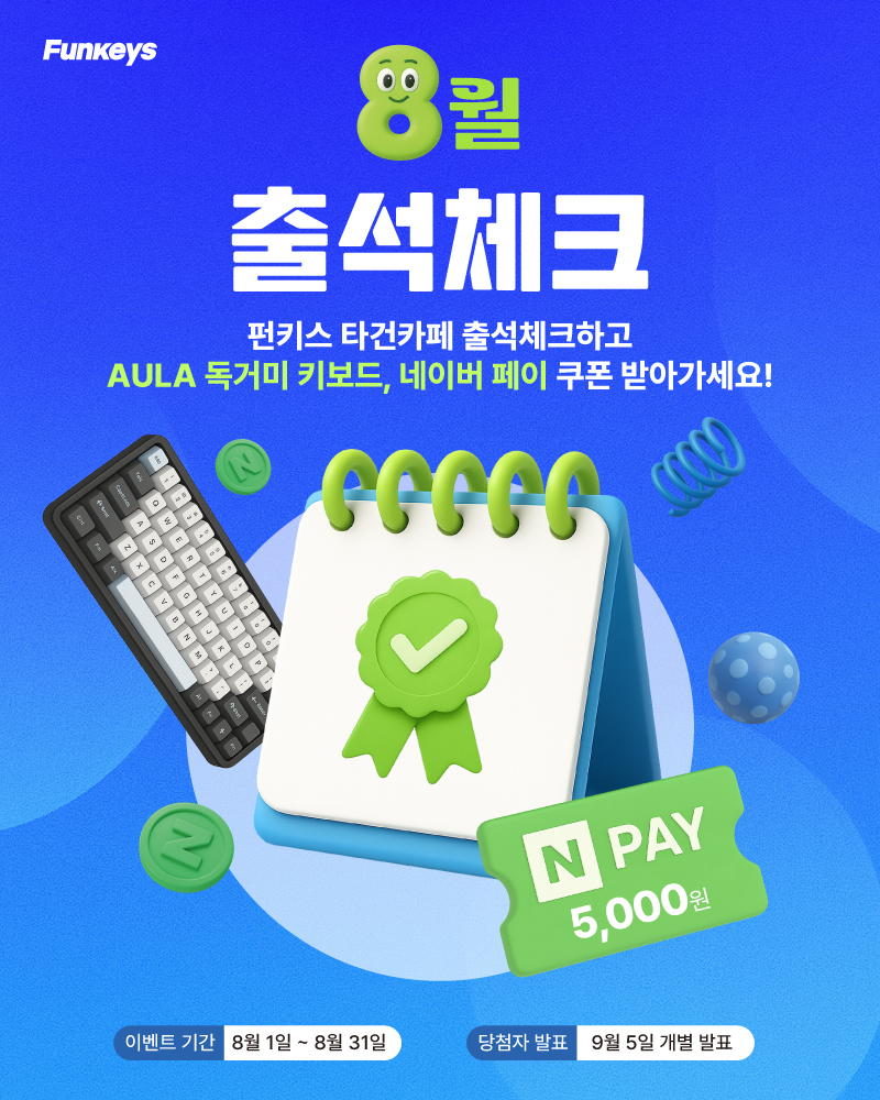 [당첨자 발표] 8월 펀키스 타건샵 출석체크 이벤트