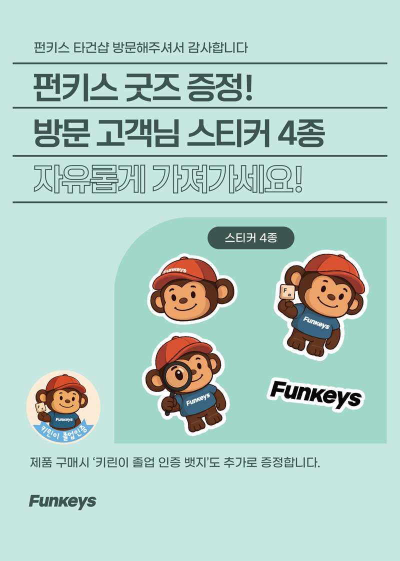 브라보텍의 프리미엄 키보드/마우스 및 액세서리 브랜드 펀키스에서 용산 펀키스 타건샵 방문 고객분들께 스페셜 굿즈를 증정합니다.