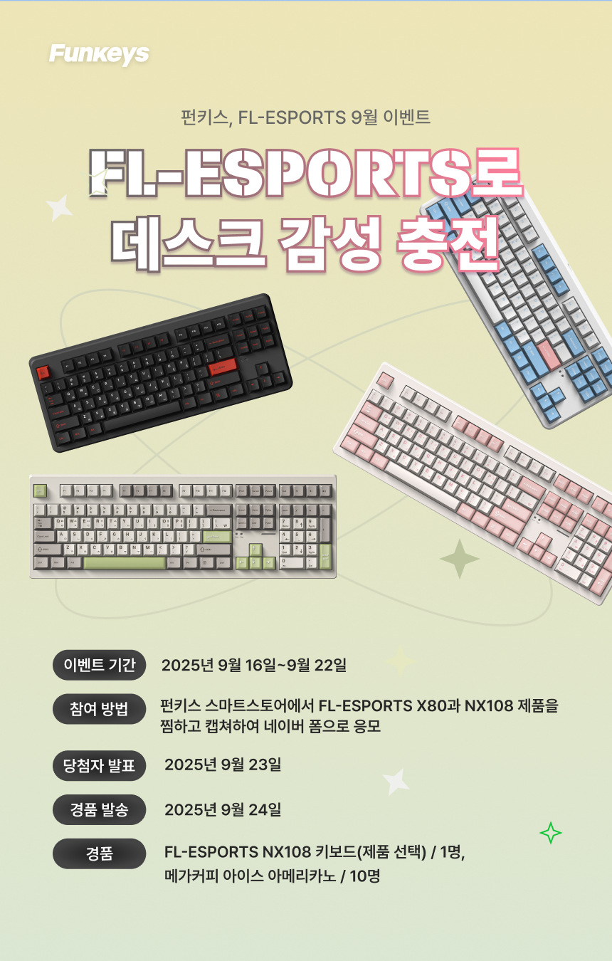 펀키스, FL-ESPORTS 9월 이벤트 X80 & NX108 ‘FL-ESPORTS로 데스크 감성 충전’ 안내