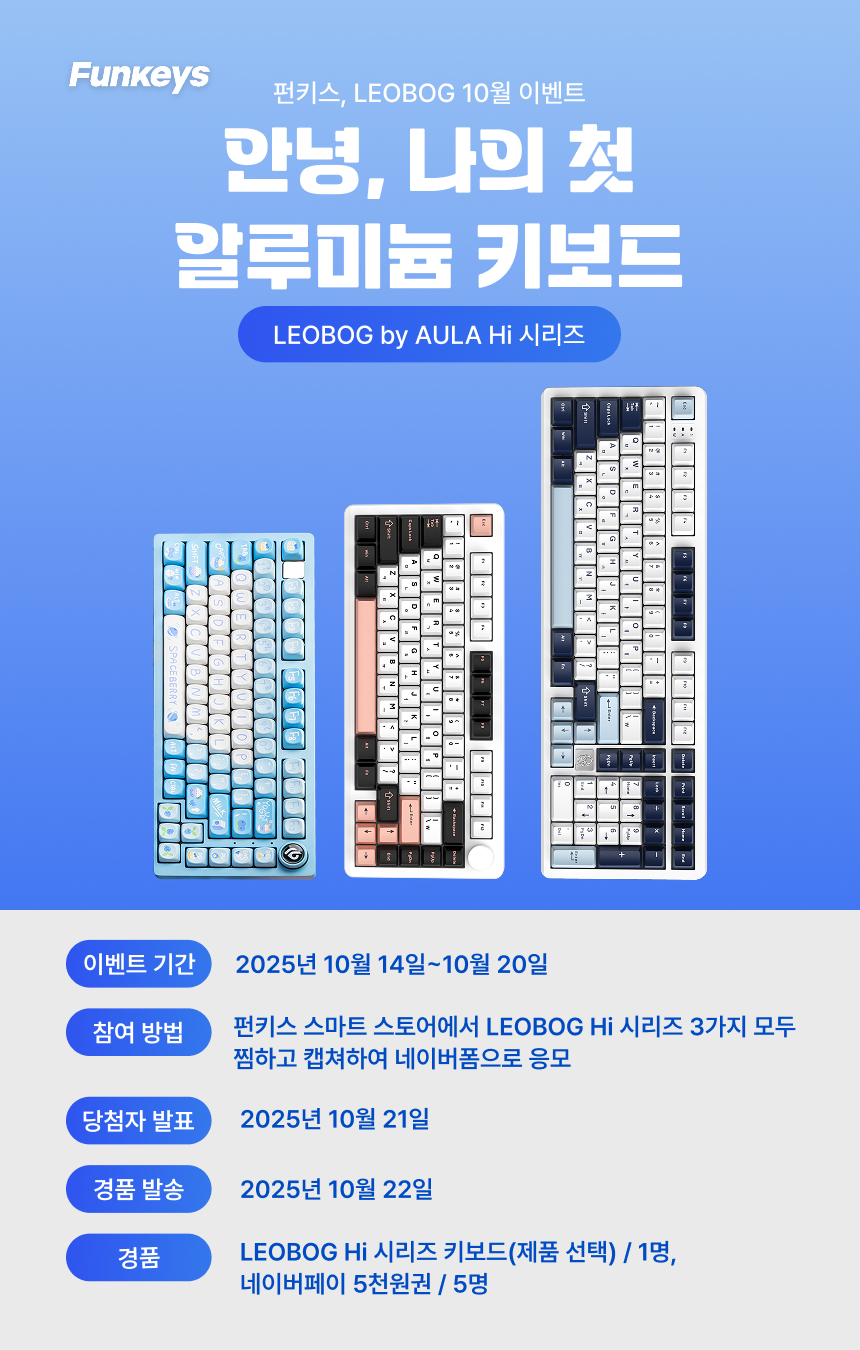 [당첨자 발표] 펀키스, LEOBOG 10월 이벤트 Hi 시리즈 ‘안녕, 나의 첫 알루미늄 키보드’